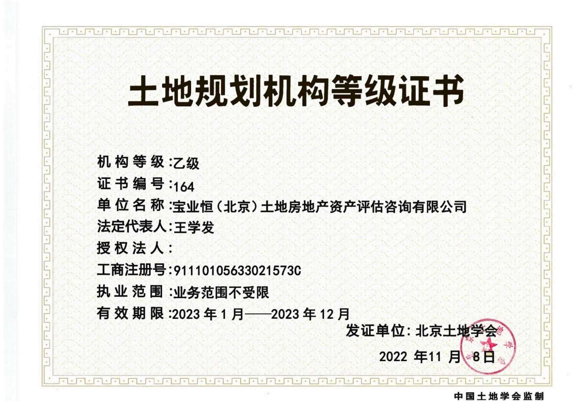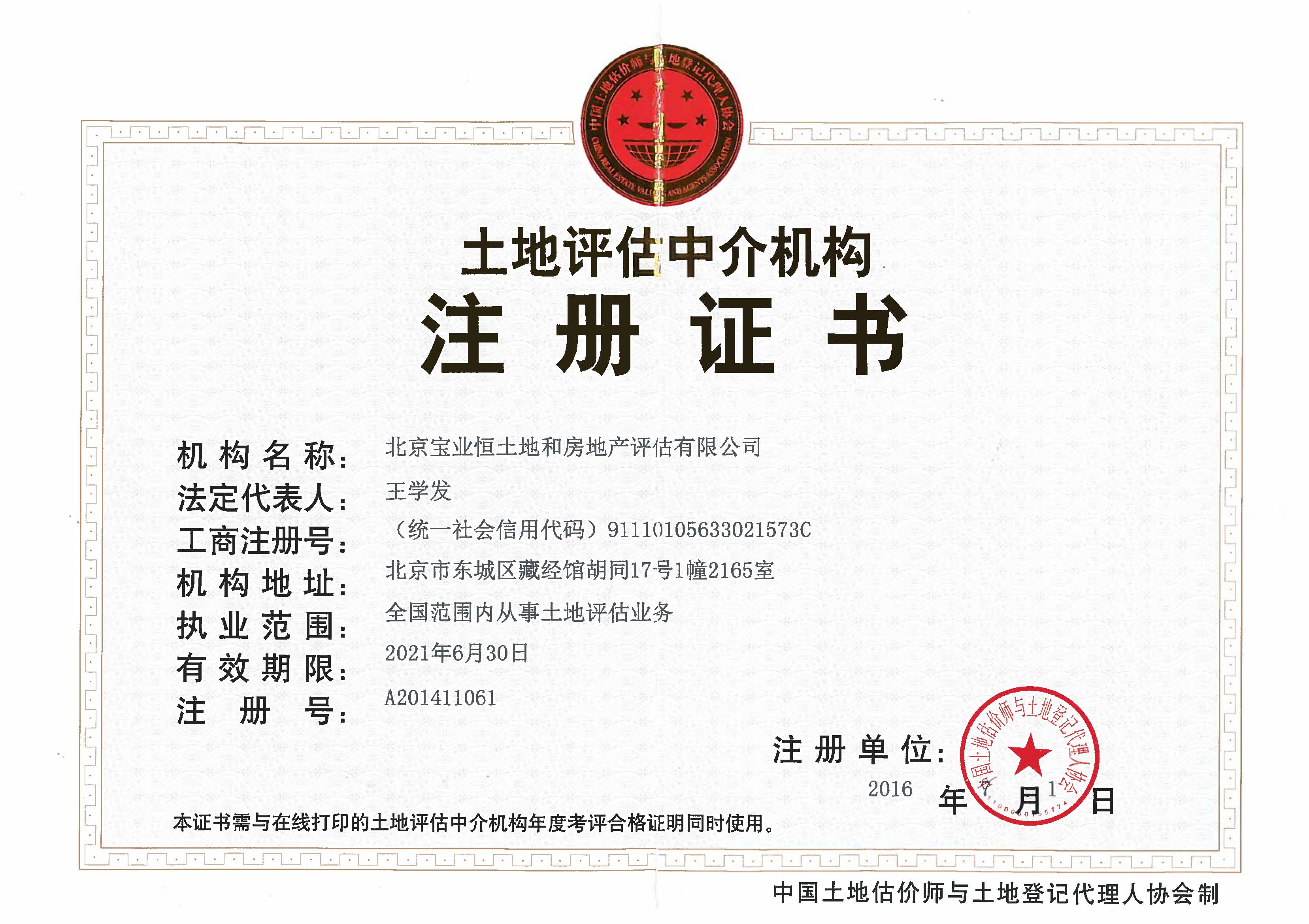• 中土協(xié)-土地評估中介機構(gòu)注冊證書