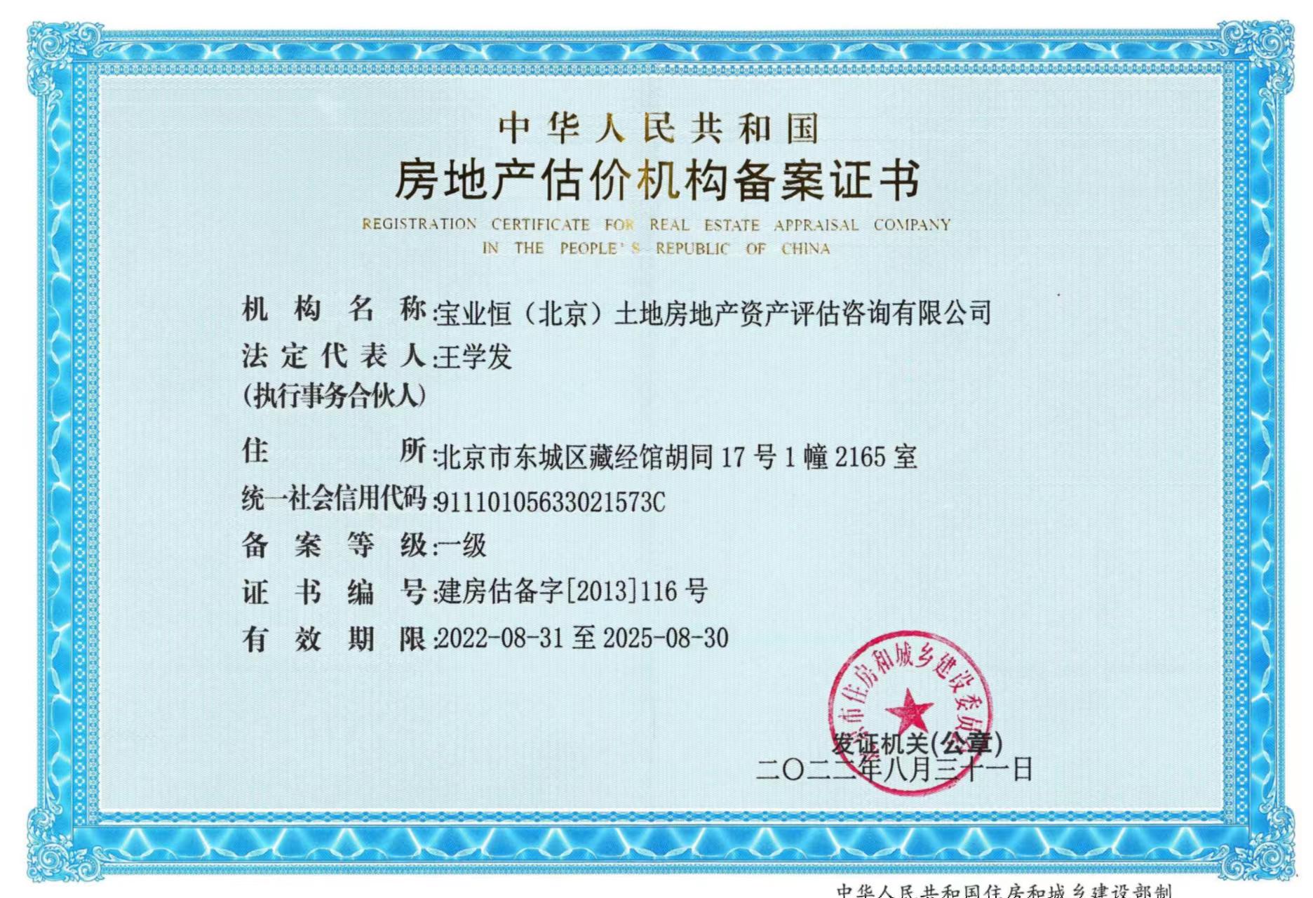 • 房地產(chǎn)估價機構(gòu)備案證書