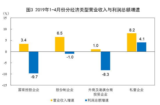 1—4月份,規(guī)模以上工業(yè)企業(yè)中,國有控股企業(yè)實(shí)現(xiàn)利潤總額5704.3億元,同比下降9.7%;股份制企業(yè)實(shí)現(xiàn)利潤總額12873.3億元,下降1.0%;外商及港澳臺商投資企業(yè)實(shí)現(xiàn)利潤總額4455.2億元,下降8.3%;私營企業(yè)實(shí)現(xiàn)利潤總額4597.1億元,增長4.1%。