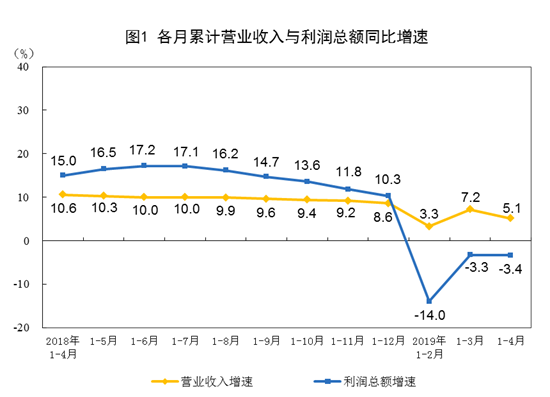 1—4月份,全國規(guī)模以上工業(yè)企業(yè)實(shí)現(xiàn)利潤總額18129.4億元,同比下降3.4%(按可比口徑計(jì)算,考慮統(tǒng)計(jì)制度規(guī)定的口徑調(diào)整、統(tǒng)計(jì)執(zhí)法增強(qiáng)、剔除重復(fù)數(shù)據(jù)、企業(yè)改革剝離、四經(jīng)普單位清查等因素影響,詳見附注四),降幅與1—3月份大體相當(dāng)。